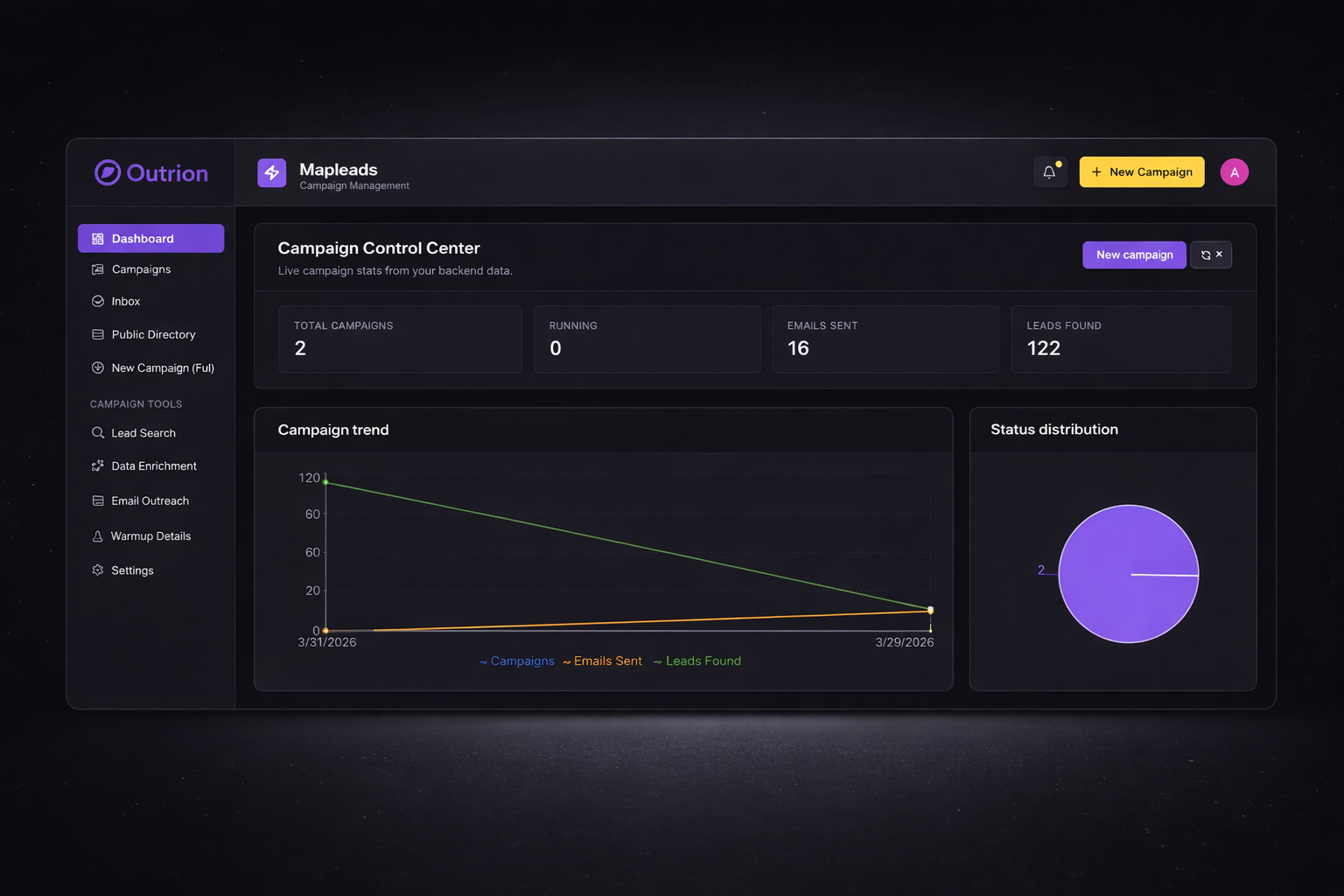 Outrion is a focused outbound operating system built for discovery, enrichment, outreach, deliverability, and tracking in one controlled workflow.